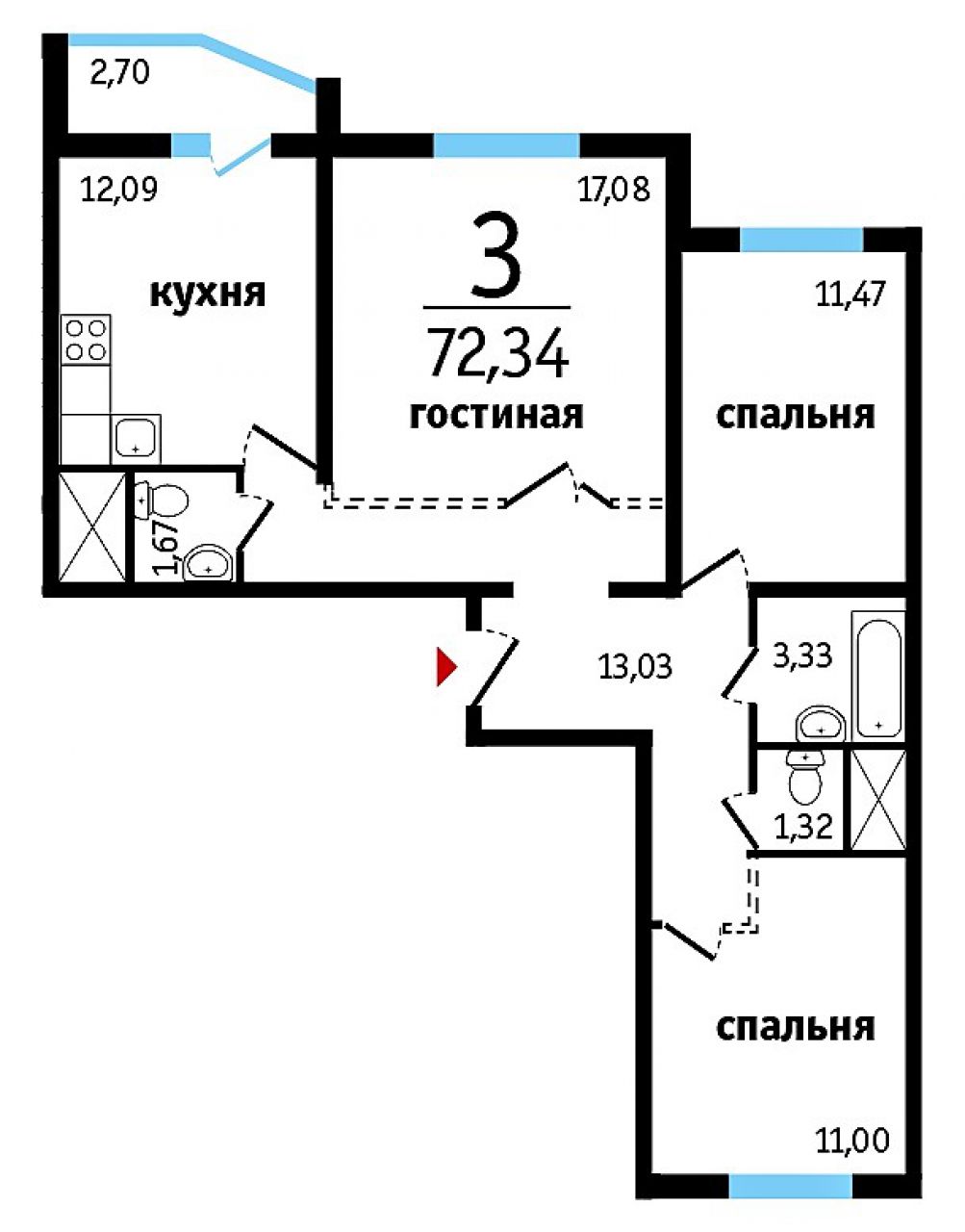 | Кол-во комнат:: | 3-х комн. |