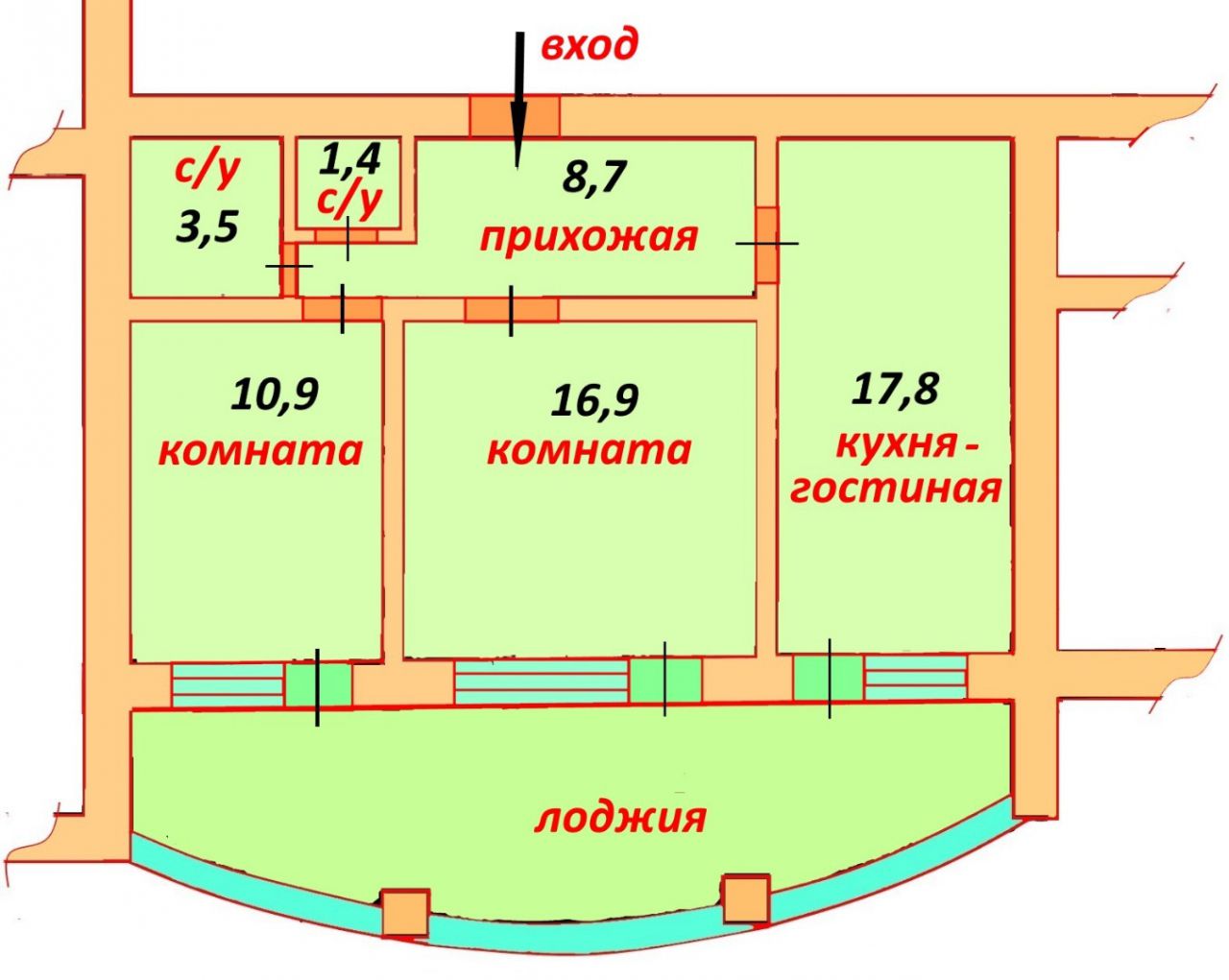 | Кухни S, м2: | 17.80 м2 |