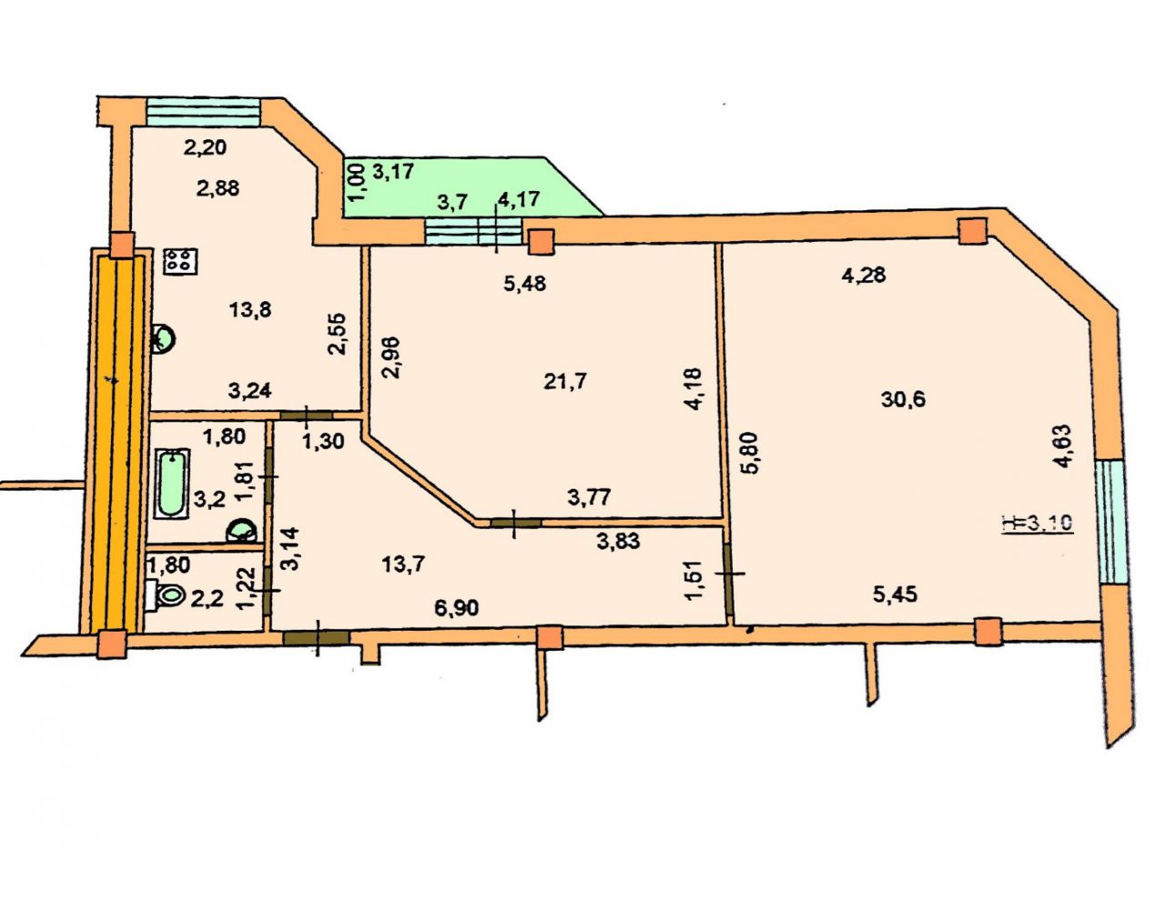 Отличная планировка - большие просторные комнаты соответственно 22 и 31 кв. метр, кухня 14 метров, раздельный санузел , коридор 13 кв. метров, высота потолков 310 см. Дорогой ремонт, отличная транспортная развязка, развитая инфраструктура - в шаговой доступности больницы, магазины, парки, рынки.