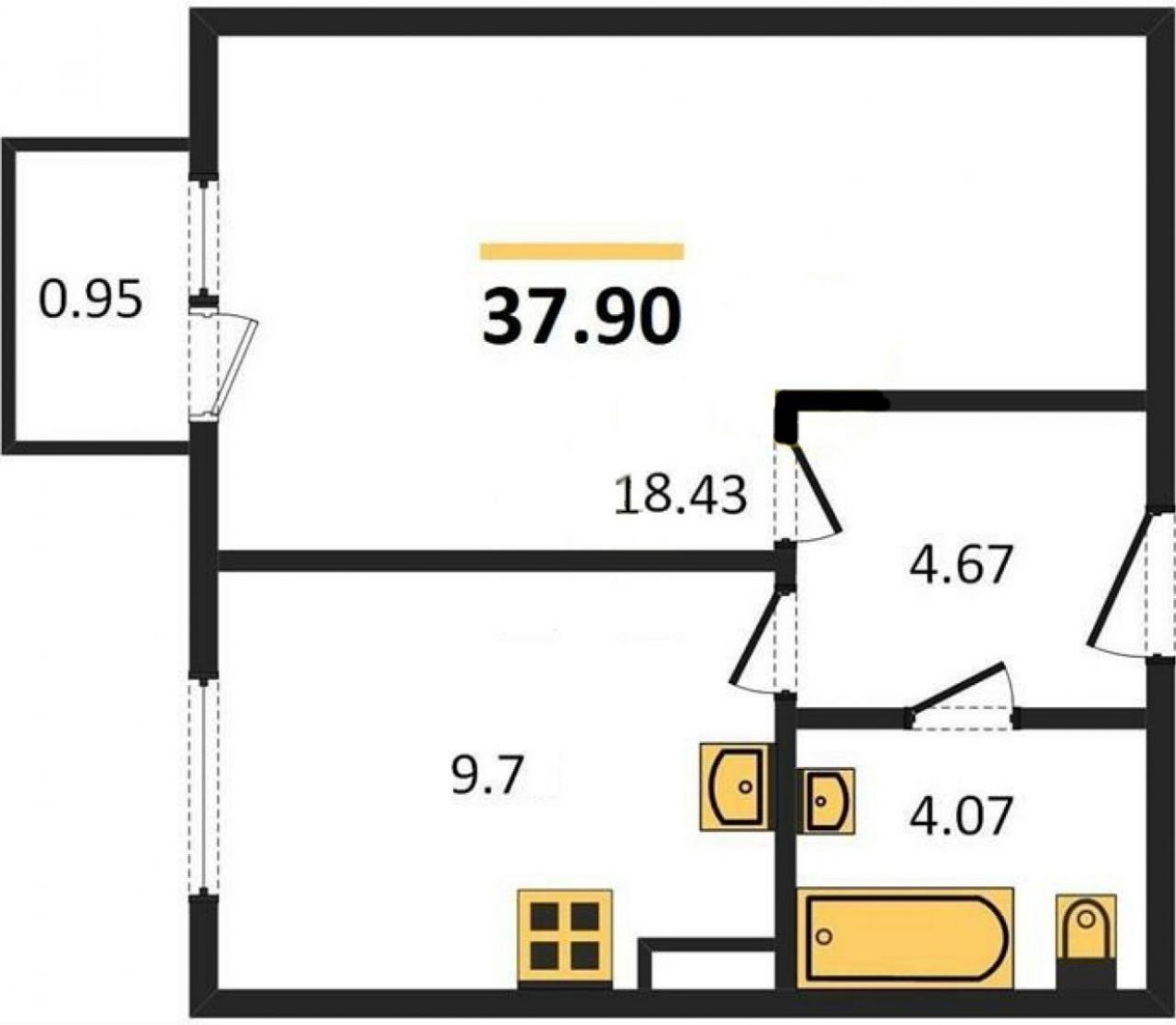 | Жилая S, м2: | 18.43 / |