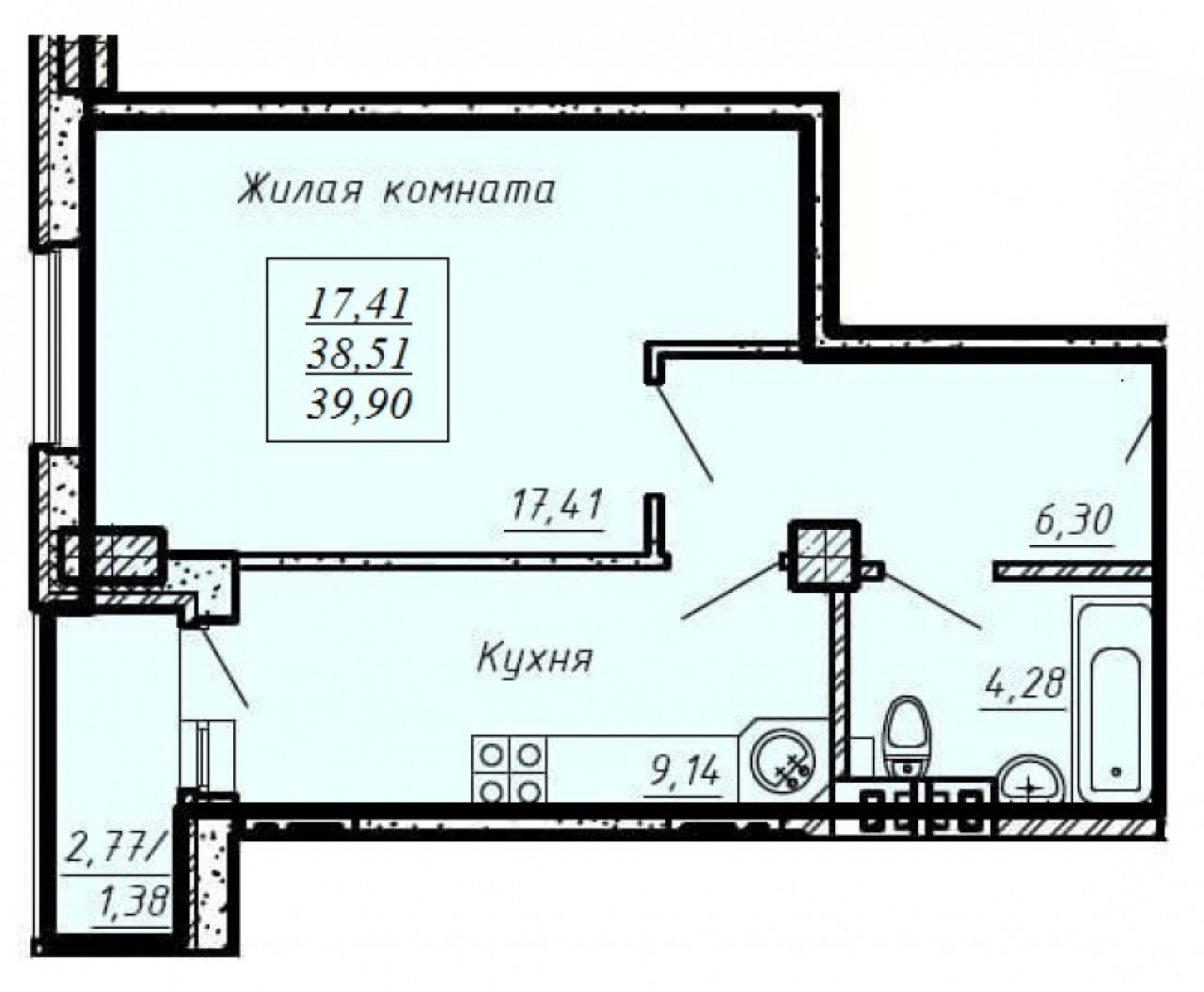 | Жилая S, м2: | 17.39 / |