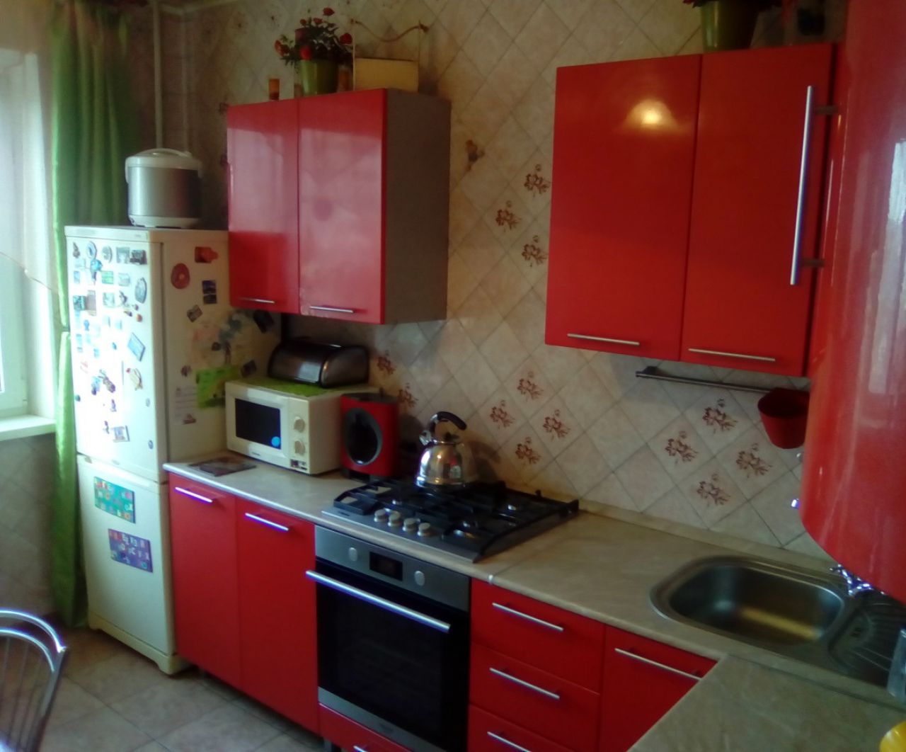 Продается 3- комнатная квартира. Неугловая, все окна металлопластиковые, лоджия застеклена. В спальнях свежий ремонт, ламинат. Зал и коридор – под ремонт. Кухня и санузел – раздельные, на стенах плитка 15х15, полы в кухне – современная плитка. Все комнаты раздельные, все системы отопления и водоснабжения заменены на пластик, все радиаторы отопления на новые биметаллические. На этаже и в квартире есть кладовые. Рядом с домом остановки общественного транспорта, магазины, не переходя дорогу есть 2 детских садика и школа №100.