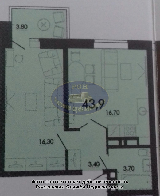 | Общая S, м2: | 44 / |