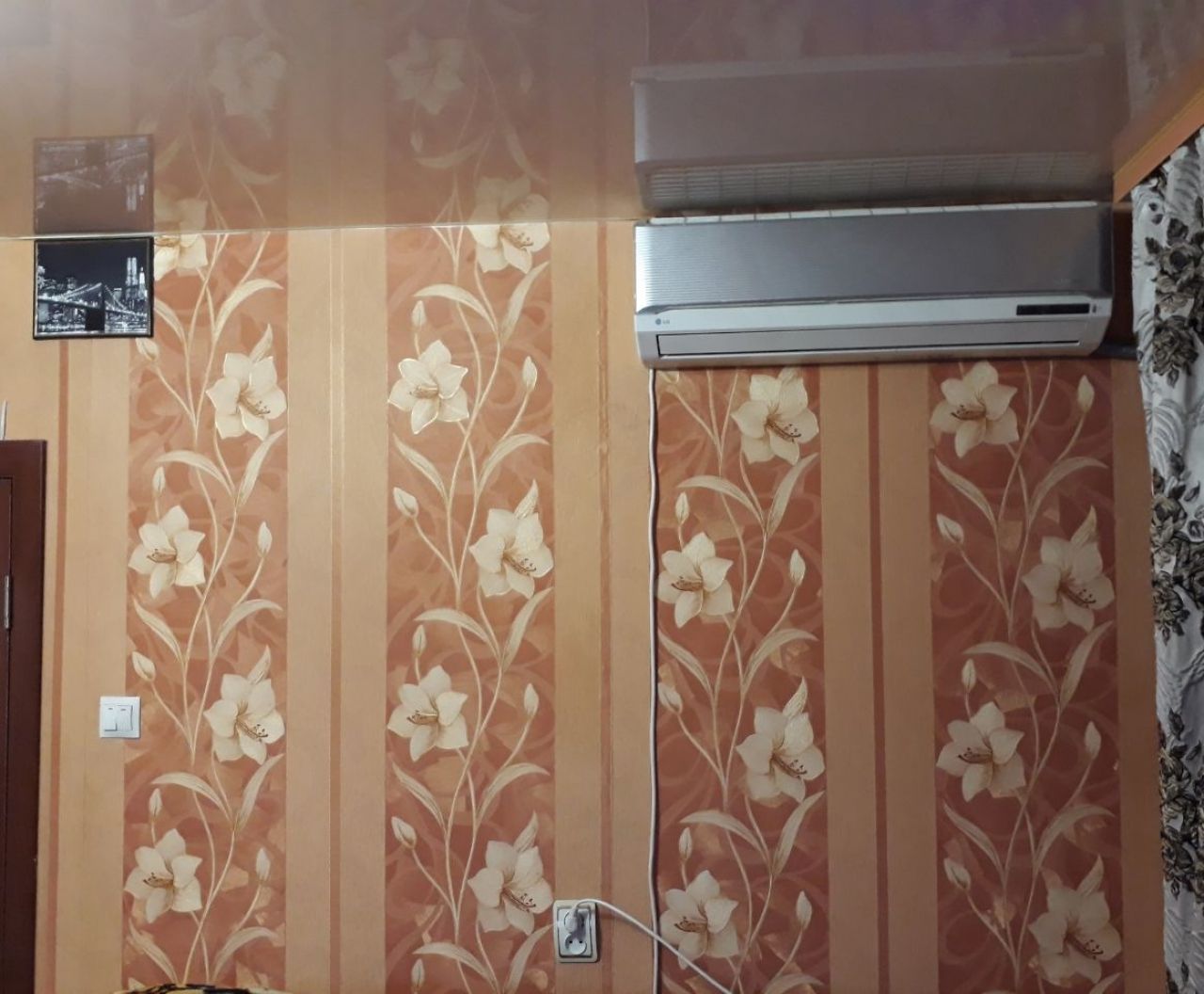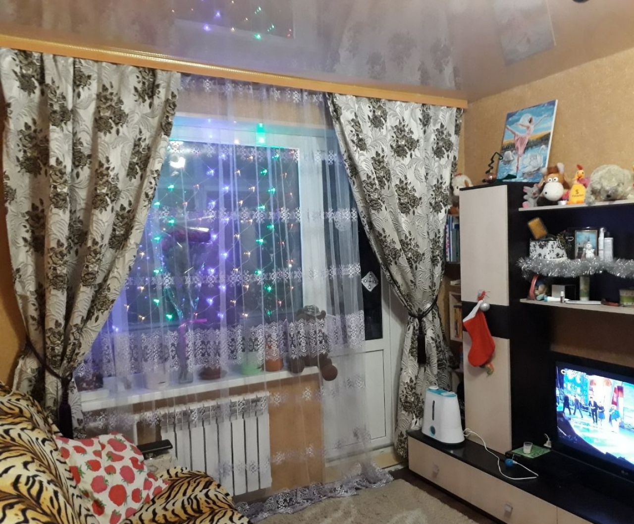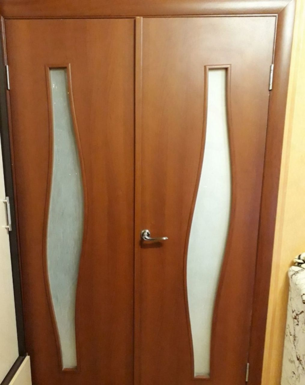Новые входные и межкомнатные двери, в комнату двойная красивая дверь. На полу ламинат, в ванной плитка. Натяжные потолки. Дорогие красивые обои, красивые шторы. Окна металлопластик. Застекленный облагороженный балкон.