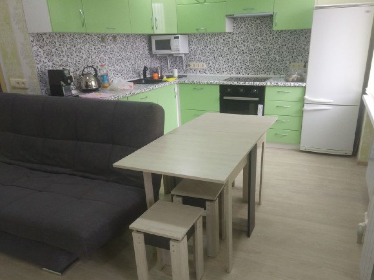 Продаётся 2-х комнатная квартира-студия с отличным ремонтом: полностью менялась электропроводка, сантехническая разводка, новые трубы и стояки, заливалась стяжка, плитка, натяжной потолок, угловая ванная, светодиодная подсветка. Дом стоит напротив торгового центра "Талер".