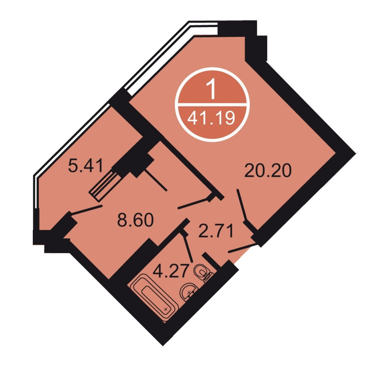 | Общая S, м2: | 41 / |